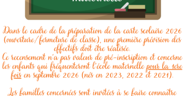 Dans le cadre de la préparation de la carte scolaire 2026, un recensement est en cours pour...